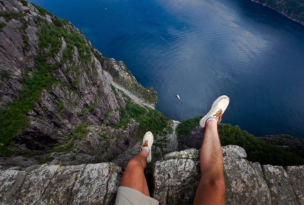 Det er uden tvivl noget af et vovestykke at nærme sig kanten, og der findes da også et hav af vilde billeder på nettet. Ikke desto mindre er Diego det allerførste dødsoffer på Prædikestolen.