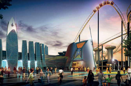 Nogle af parkens forlystelser vil blive bygget over temaer fra stor-film som 'Titanic' og 'Mission Impossible'. Derudover vil parken få et 'Life Style Center', et auditorium og en 'Business-Park'.