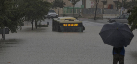 I Málaga måtte en buschauffør reddes ud af en bus, da den på et tidspunkt stod helt under vand.