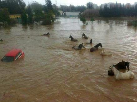 I Estepona er alle floder og bække gået over deres bredder, og huse og bygninger står under vand.