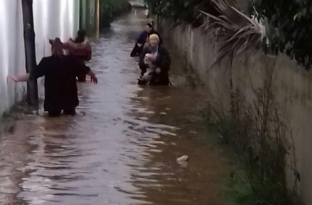 Floder er gået over deres bredder, huse, garager og biler står under vand
