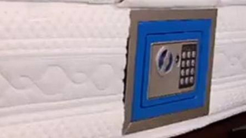En genial sengeproducent i Salamanca har opfundet en madras med et indbygget pengeskab, så du fremover - helt sikkert – kan sove med formuen gemt i madrasen.