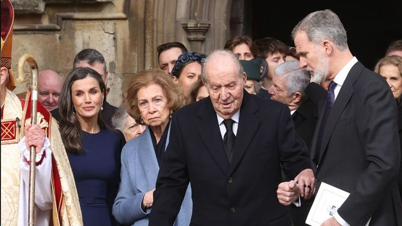Ved afslutningen af ceremonien viste far og søn en kærlig gestus: Juan Carlos forlod St George's Church ved at holde sin søns arm, og hans søn hjalp ham ind i bilen, der kørte dem til slottet, hvor dronning Camilla af England bød de 330 gæster på en reception. Kort efter forlod dronning Letizia og dronning Sofia kirken, ledsaget af Irene af Grækenland, begge søstre til Konstantin II.