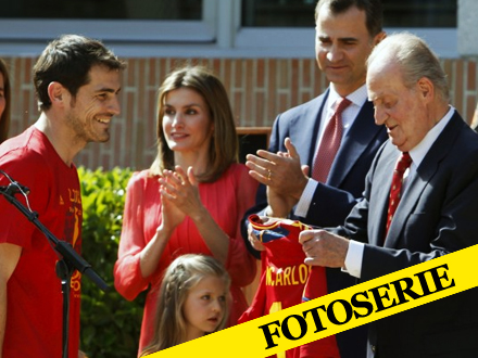 Undervejs på turen gjorde bussen stop ved La Zarzuela-paladset, hvor den spanske konge, Juan Carlos, lykønskede spillerne og træner Vincente del Bosque.