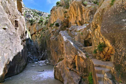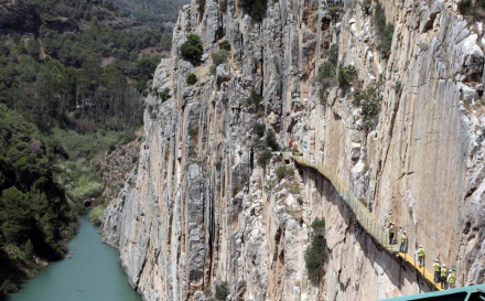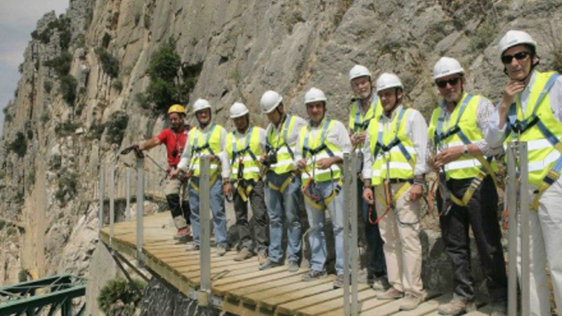 El Caminito del Rey, der er kendt som den farligste gangbro i verden, blev opført i perioden mellem 1901 og 1905 for at arbejdere kunne komme frem og tilbage i forbindelse med opførelsen af en dæmning ved Guadalhorce-floden. Den blev officielt indviet i 1921 af kong Alfonso XIII – deraf navnet. Området er siden blevet døbt ”El Chorro”. Det er de store, blågrønne søer, du kan se fra flyet, når du lander i Málaga Lufthavn.