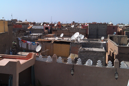 Vi fik vores værelse øverst oppe på tagterrassen, hvor der var udsigt ud over medinaen.