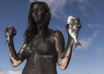 Jill Love poserer som en død fisk