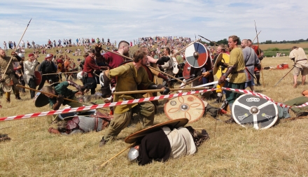 200 krigervikinger fra 12 lande er samlet til det store slag om Trelleborg. I arenaen for kamptræning ses gennem hele dagen frygtindgydende krigere med sværd, spyd, økser og skjolde. Inden kampene er der instruktion på engelsk af den kampansvarlige. Alle er iført krigsdress med brynjer, hjelme, arm- og benbeskyttere.