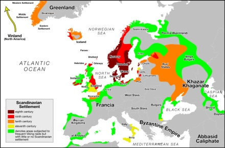 De danske og norske vikinger tog på togter, hvor de kom til både England, Skotland, Færøerne, Island, Grønland Frankrig og Spanien. De svenske vikinger drog ned gennem Rusland og nåede så langt som til Konstantinopel.