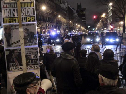 Samtidig med at det konservative regeringsparti har travlt med at redde trådene ud efter de mange anklager, var der fredag aften en omfattende demonstration i Madrid (foto, red). 1.000 personer samledes foran det konservative partis hovedkontor på Calle Genova i Madrid, for at markere deres utilfredshed med det stigende antal korruptionsskalndaler blandt landets politiske ledere.
