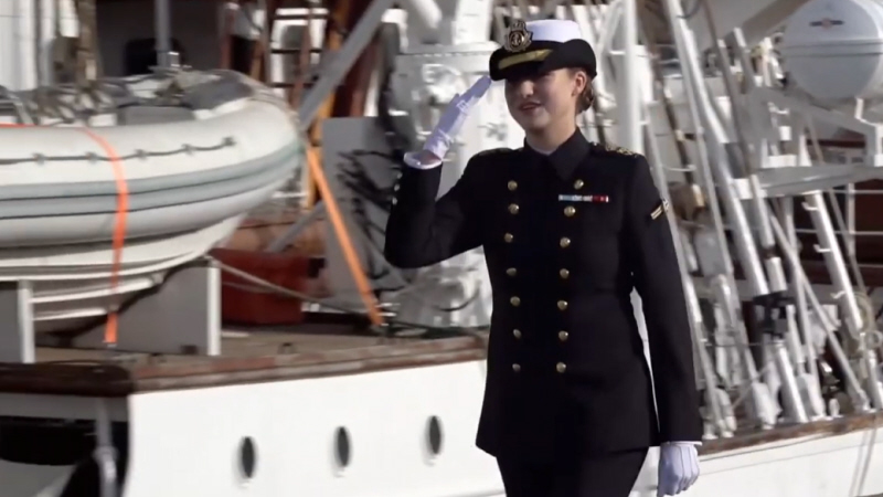 Tronfølgeren gik sammen med resten af tredjeårseleverne fra Escuela Naval Militar de Marín om bord på skoleskibet onsdag: