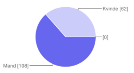 Besvarelserne fordeler sig med 108 mænd (64 procent) og 62 kvinder (36 procent)