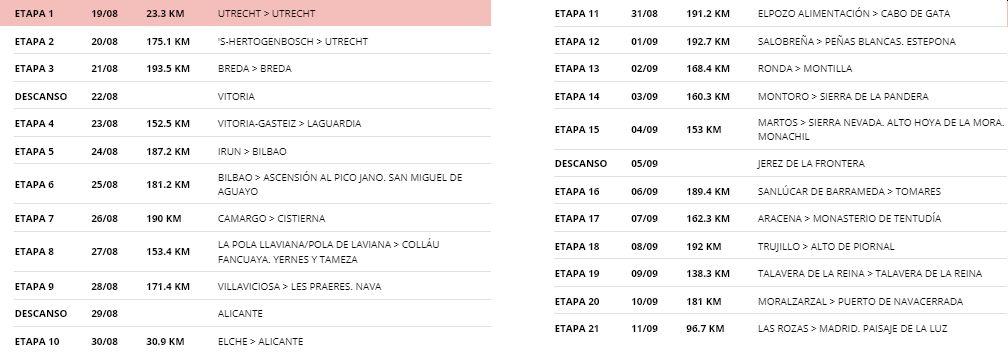 Som det fremgår, vil La Vuelta også besøge Alicante- og Málaga Provinserne