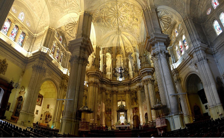 Næste stop på turen er Málagas katedral. Den ligger fem minutter fra Calle Larios og virker umiddelbart som en traditionel kirkebygning uden de helt store overraskelser. Men hvis man ser efter, mangler katedralen alligevel noget. Som en af Spaniens få katedraler har Málagas kun et enkelt klokketårn. Det andet tårn skulle have været opført for over 400 siden, men biskoppen havde ikke lige flere penge i kassen og opgav til sidst at gennemføre det oprindelige projekt.