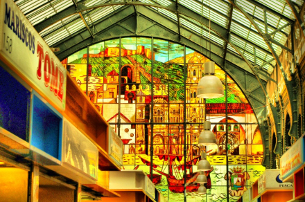 Hallen var oprindeligt skibsværft, da havet engang nåede helt derop, men den er i dag forvandlet til en vidunderlig markedshal med et kæmpe udvalg af frugt, grøntsager, fisk og kød.