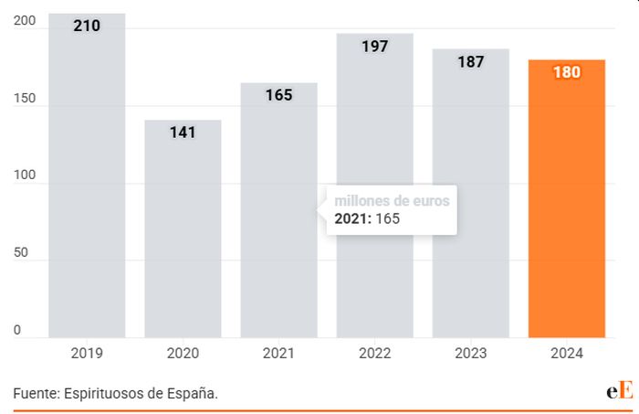 43 procent af den spanske spiritusproduktion går allerede til udenrigshandel, og eksporten af alkoholiske drikke steg sidste år med 4,7 procent, med en værdi på over 1.040 millioner euro og et færdigvarevolumen på mere end 137 millioner liter, hvilket svarer til 195 millioner flasker eksporteret ud over Spaniens grænser.