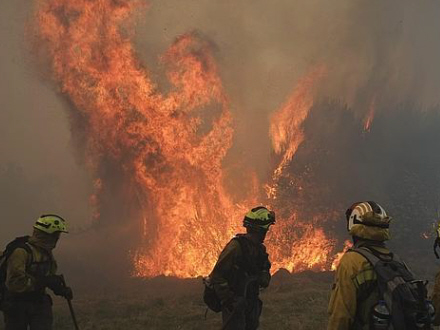 De 500 indbyggere i Santibáñez el Alto i Cáceres Provinsen havde ingen mulighed at slippe væk, da de blev fanget af flammehav på alle sider. Med vandspande og haveslanger kæmpede de selv mod ilden, som først kom under kontrol efter fem timer.