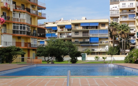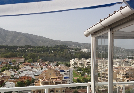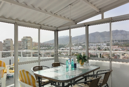 Vi er i den gamle, hyggelige del af Playamar i Torremolinos. Panoramaudsigt fra øst til vest med det skønne Middelhav mod syd og bjergene mod nordvest.