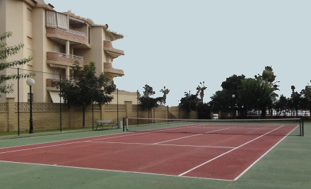 Nyanlagt tennisbane. Ejerne betaler 2 euro pr. time for at benytte den