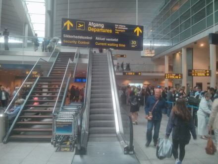 Klokken 9:14 opfordrede Københavns Lufthavne de rejsende, der endnu ikke var mødt op i lufthavnen, til at blive hjemme. Terminalerne i lufthavnen er propfyldt med de mange mennesker, der stadig venter på at komme igennem sikkerhedstjekket.