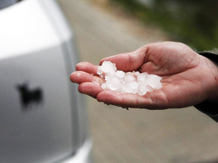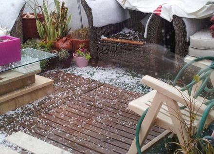 Tydeligvis uventet hagl på terassen