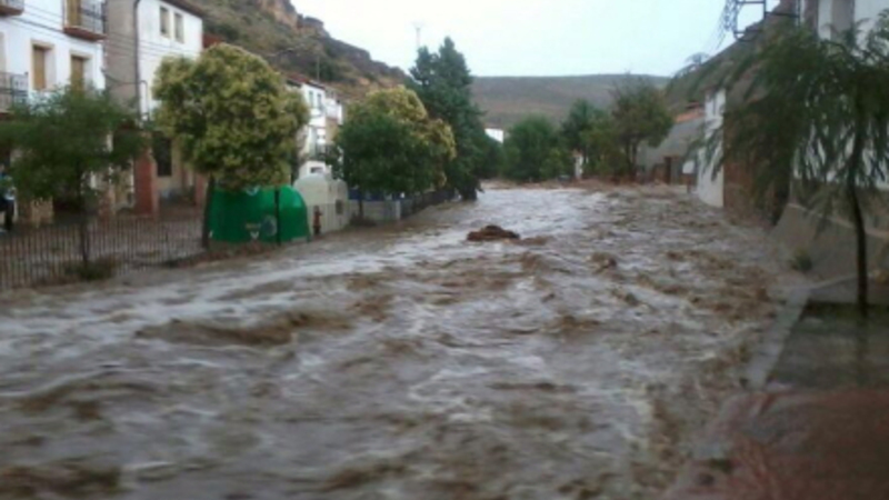 En 48-årig mand er savnet, efter hans bil lørdag blev skyllet væk af vandmasserne fra et kraftigt tordenvejr i Teruel. Det lykkedes mandens hustru at kravle ud af vinduet inden bilen forsvandt.