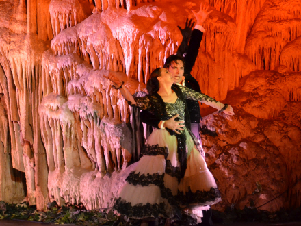 Efter rummet, hvor koncerterne bliver afholdt, fortsætter hulerne langt ind, hvor en meget fin belysning afslører den ene fantastiske drypstensformation efter den anden.