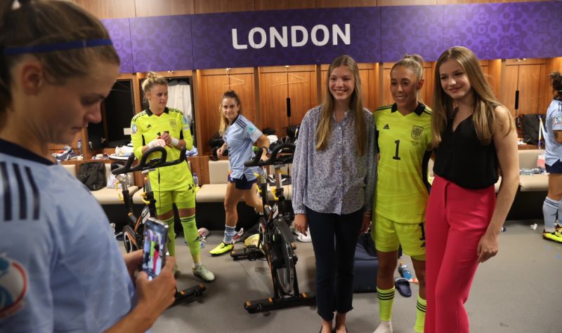 Efter Spanien havde sikret sig pladsen i kvartfinalen gik prinsesserne ned i omklædningsrummene for at møde spillerne og fejre sejren med dem.