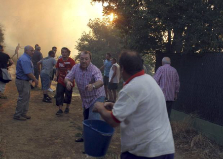 Flere naboer forsøger desperat at slukke branden ved Molinaseca