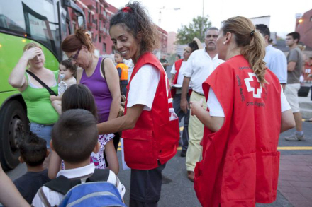 Frivillige fra Røde Kors tager imod de evakuerede i udkanten af Granadilla de Abona
