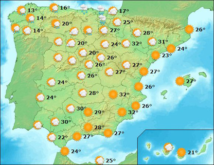 Efter et par varme dage med 38 grader flere steder i Sydspanien, er der udsigt til mere skyet vejr. Årsagen er et lavtryk, som i dag trækker ind over Galicien, og det giver mere ustadigt og køligt vejr i den næste uges tid.