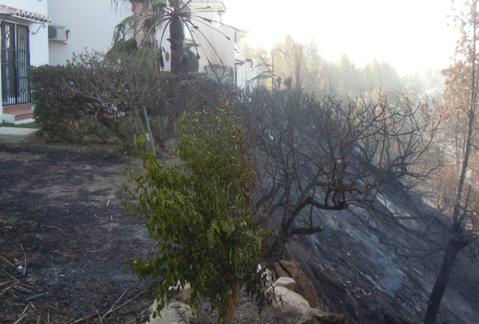 Galninge menes at stå bag fredagens uhyggelige brand i Mijas, som har ødelagt et kæmpe kystområde med ferieboliger. 95 hektar brændte i den kraftige vind og har tilbage er et område med skov og lav bevoksning forvandlet til sort aske.