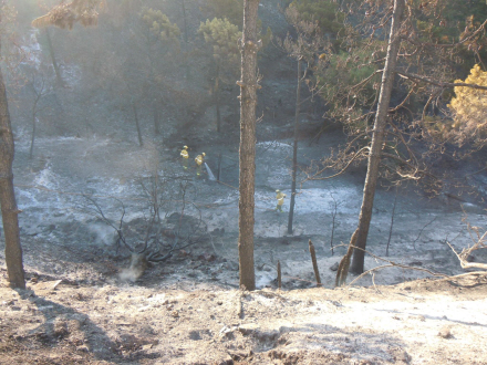 Arbejdet blev besværliggjort af meget hård vind fra vest, som lynhurtigt førte flammerne gennem det knastørre område.