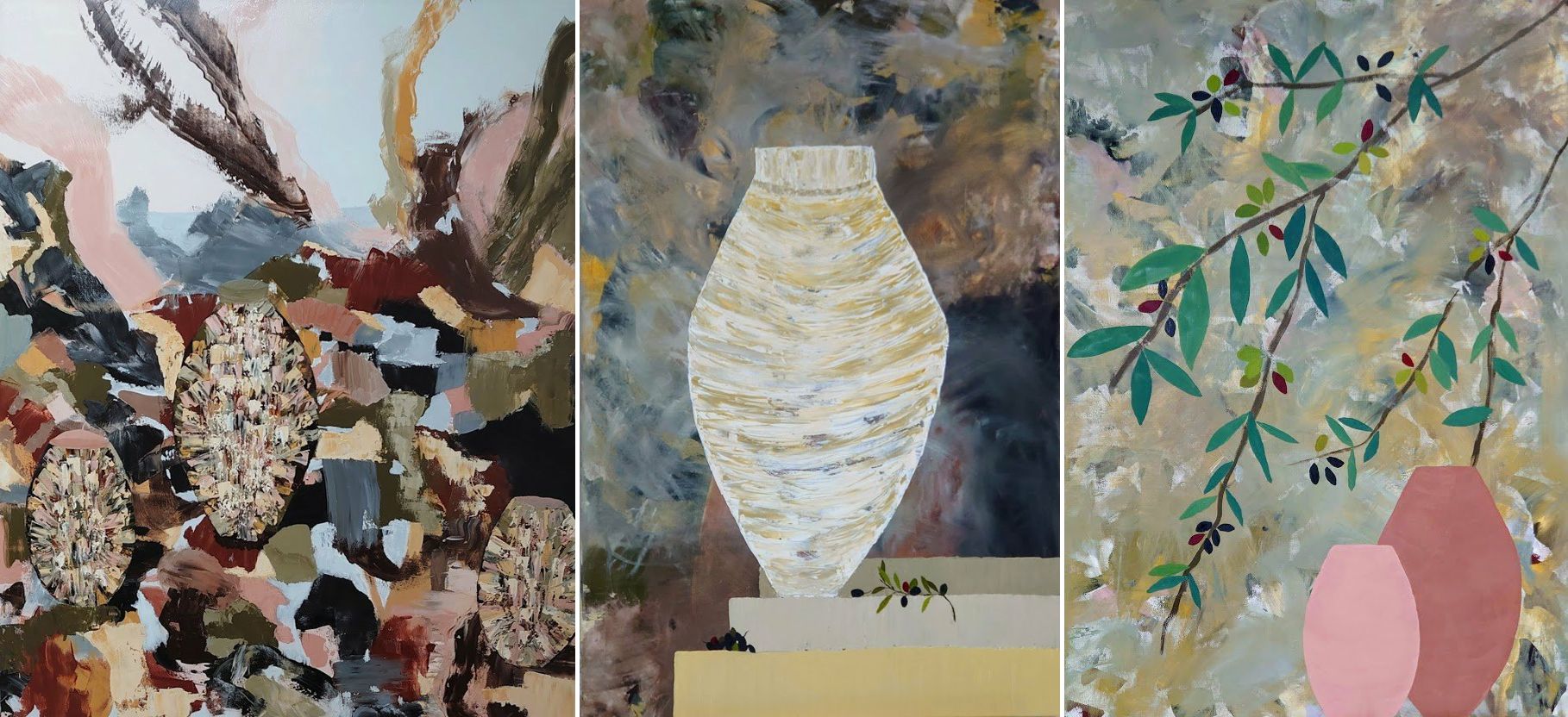 Hvert værk får IKKE sin egen titel for jeg synes, det er meget vigtigt, at der er noget til beskuerens fantasi. På den måde sætter jeg ikke det enkelte værk i en bestemt "kasse". Den sidste serie jeg arbejdede med hedder "Between Cultures" og den serie, som jeg er i fuld gang med lige nu, hedder "Solutions". Begge serier udført i olie på lærred.