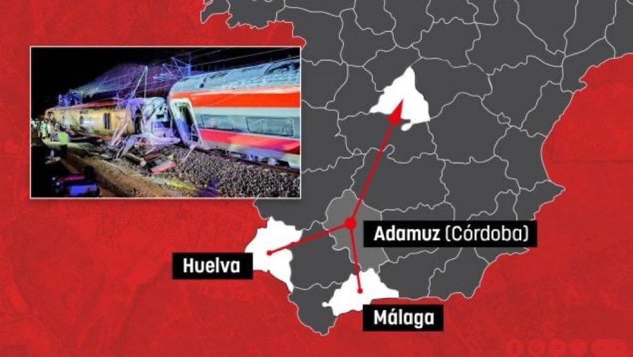 Ifølge den oprindelige rapport fra RTVE og de tekniske detaljer fra Adif (det spanske banestyringsagentur), begyndte ulykken, da et højhastighedstog fra selskabet Iryo - som var på vej fra Málaga mod Madrid med 300 passagerer - blev afsporet ved indkørslen til Adamuz-stationen.