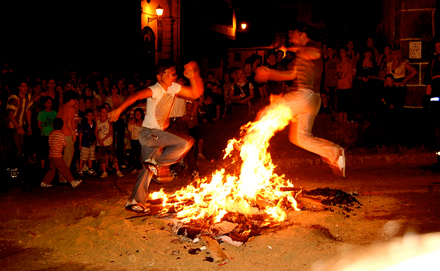 En af de mange traditioner ved Sankt Hans-festerne i Spanien er at springe over bålet, når det er reduceret til gløder. Efter sigende slipper man på den måde af med de onde ånder.