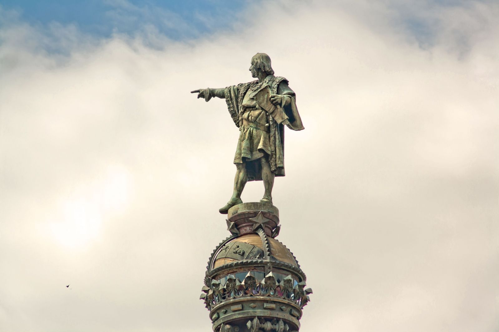 Columbus' spanske navn er Cristóbal Colón, og den dag i dag står han stadig i den nedre ende af La Rambla i Barcelona. Skulpturen blev lavet til Exposición Universal de Barcelona til ære for Columbus' første rejse til Amerika. Og han peger mod USA: