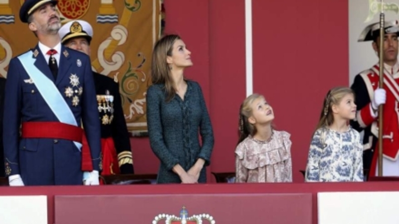 Kongeparret havde for første gang deres døtre, Leonor på otte år – kronprinsessen - og Sofía på syv år, med i forreste række. Kong Juan Carlos, der stadigvæk betegnes som konge, var ikke til stede.