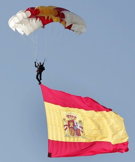 Højtideligheden startede søndag klokken 11, hvor det spanske flag – traditionen tro - blev kastet ned sammen med en faldskærmsudspringer