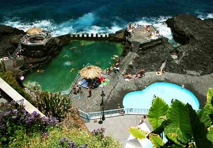 Charco Azul på den lille kanariske ø La Palma. Her findes flere ”pools” til alle aldre: en stor pool til ”voksne”, en børnepool og ”dame-pool”, med naturligt havvand og små vandfald.