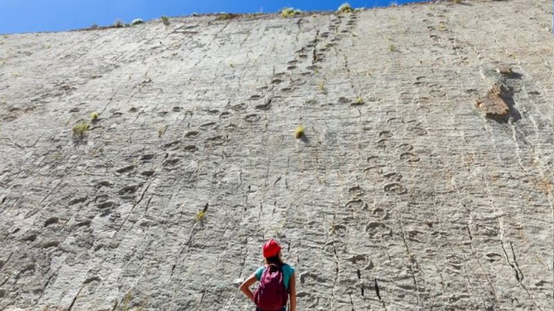Cal Orck'o i Bolivia er et af verdens mest spektakulære fossile fundsteder. Klippesiden var søbund i kridttiden, og her efterlod utallige dinosaurer deres fodaftryk i det bløde mudder.