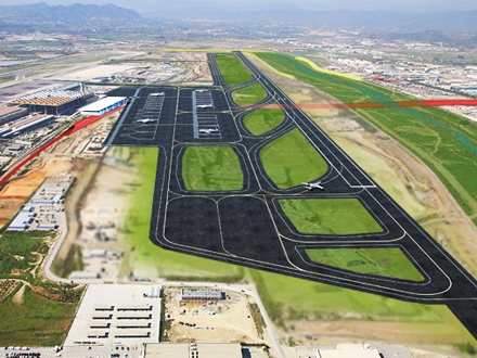 Den nye landingsbane er 2.750 meter lang, 'V-formet' i 14 grader og ligger mellem lufthavns-terminalen og Guadalhorce-floden.