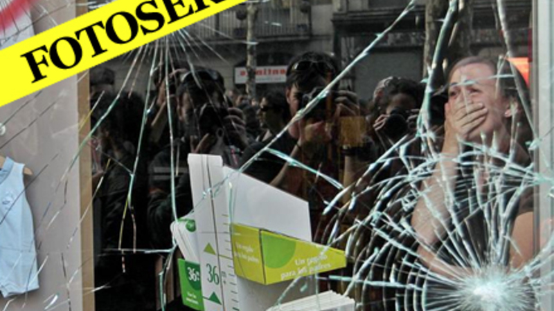 Unge er ved at smadre et vindue i Corte Inglés