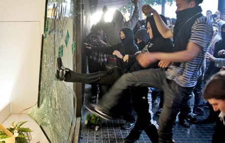 Sådan ser mange butiksvinduer ud efter en demonstration