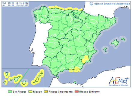 Meteorlogerne har igen udstedt gult hedevarsel. Det er gældende frem til mandag aften klokken 19 og omhandler i første omgang Valle del Guadal...