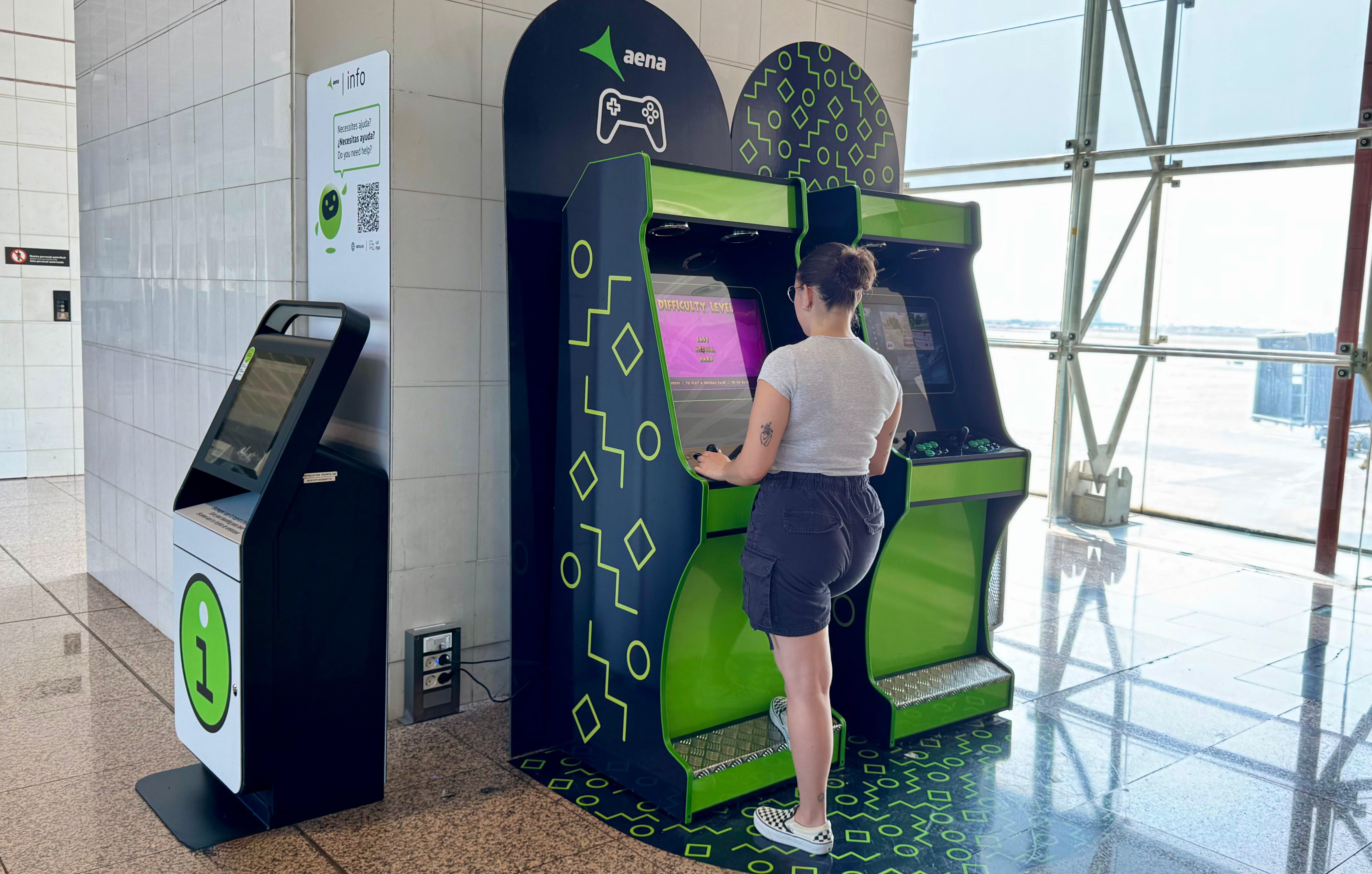 Arkademaskinerne er placeret nær gatene, så passagerer let kan nå dem, inden flyet afgår.