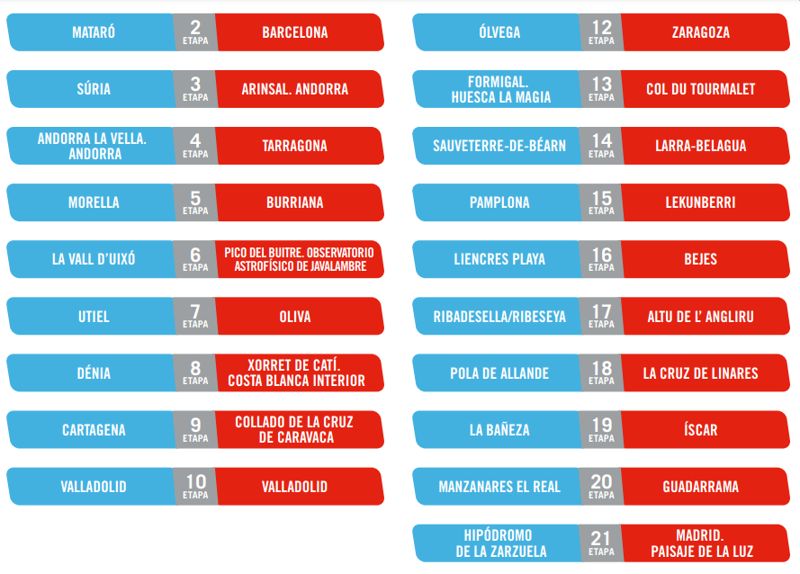 Etaperne i La Vuelta ‘23 - klik for at se større