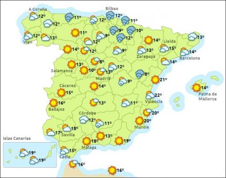 Ti provinser er i dag i forhøjet beredskab på grund af hård vind herunder Aragón, Catalonien, De Kanariske Øer, Balearerne og det vestlige Andalusien. I de nordlige egne er der fare for laviner og sneskred på grund af stigende temperaturer.