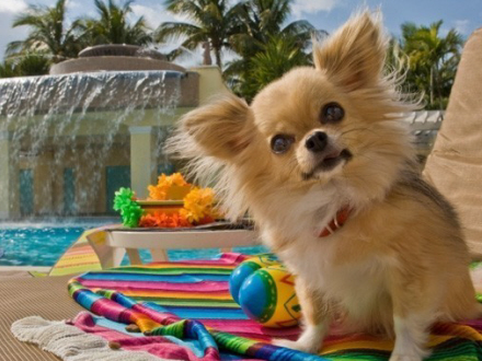 Ren luksus og masser af udendørs aktiviteter, en swimmingpool på 1.500 m2 omgivet af palmer og skov, cykling og ridning, et fitness-center, spa på 800 m2, og - ja - så kan man selvfølgelig gå tur med sin darling. Pris for at medbringe en firbenet gæst: 37 euro.