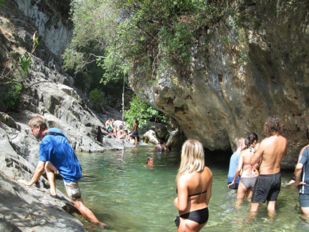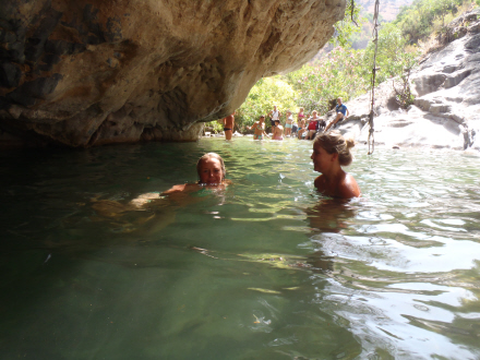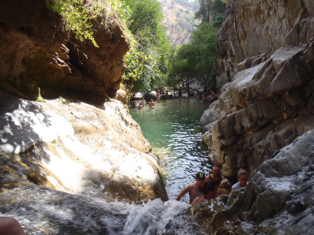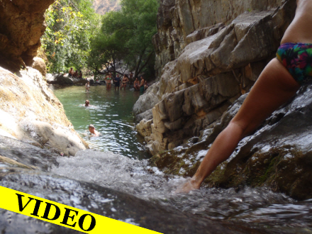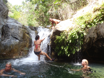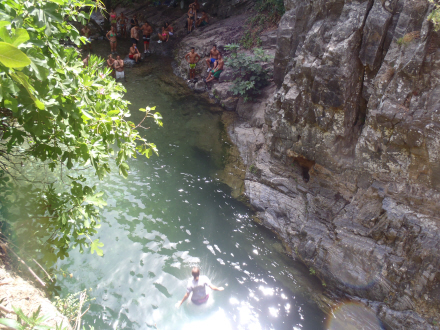Men det er de færreste, der har taget turen mod strømmen op ad vandløbet. Efter et par hundrede meter er der en lille lagune med krystalklart vejr. Herfra kan du svømme og kravle videre op gennem terrænet og klipperne for til sidst kaste sig ud fra syv meters højde. Du kan også blive her og nyde vandet.